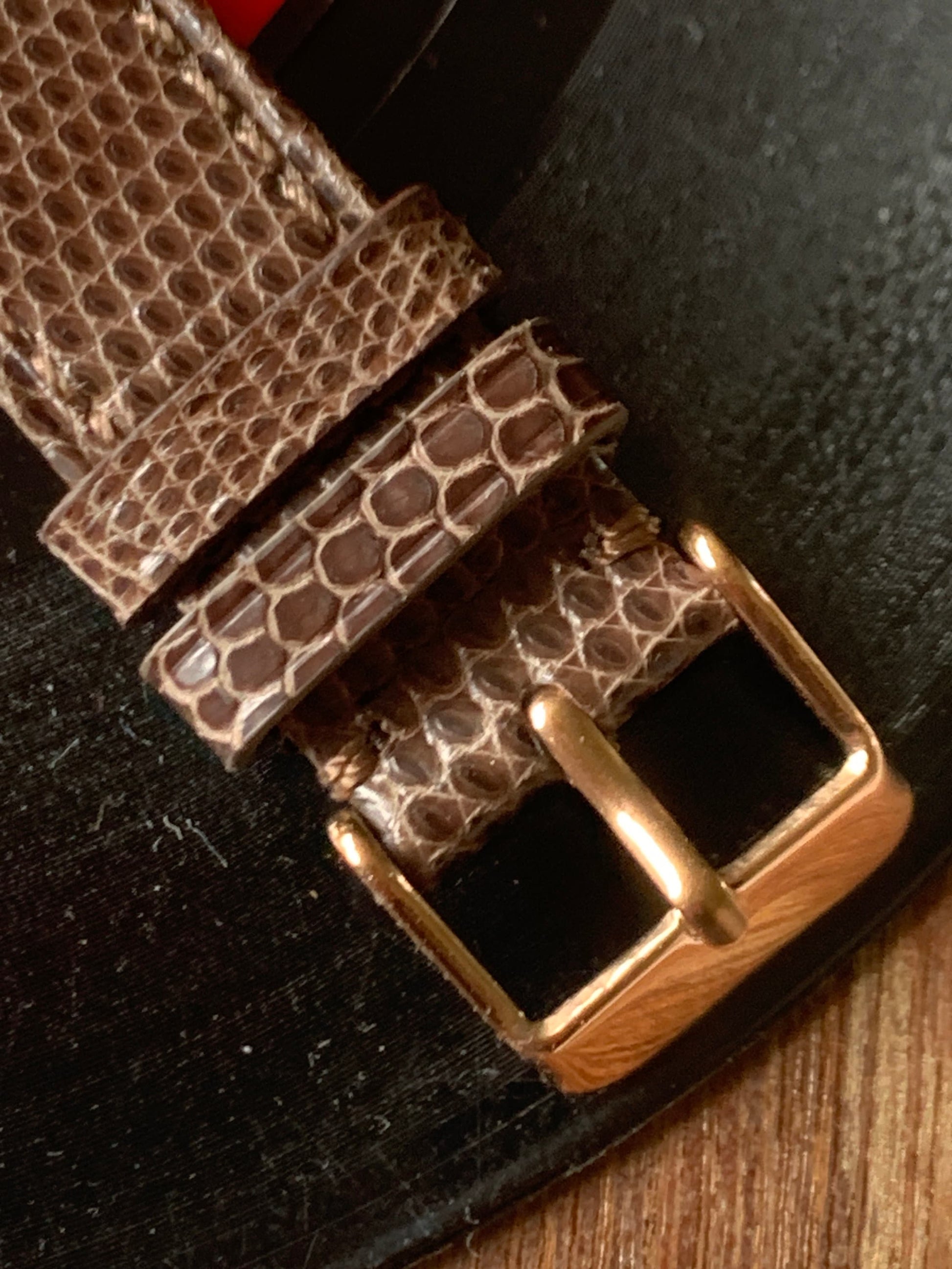 1980s Caravelle by Bolova Quartz Watch Gold Tone Finish, White Dial with Day/Date New battery. New Lizard Style Band. Overall Good Condition