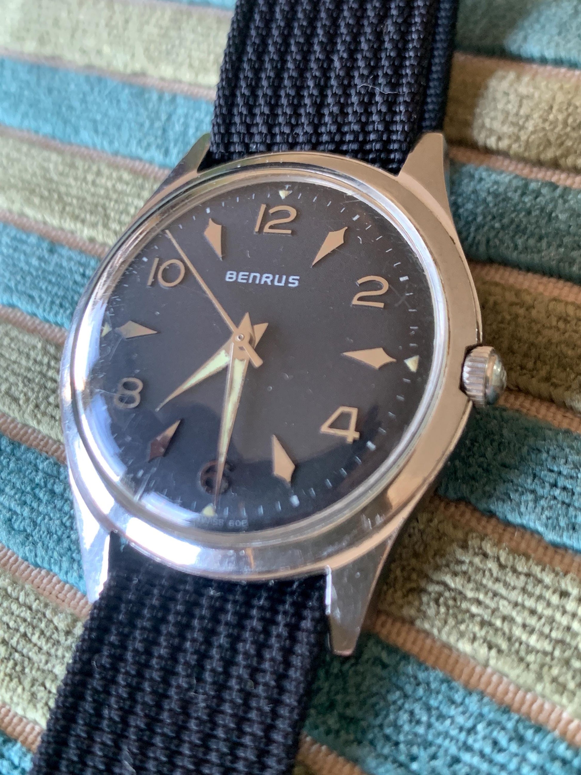 Benrus Series 2155 Watch WR with Black Dial. Very Good Condition, Mid-Sixties Winder with New Nato Strap. Very nice.
