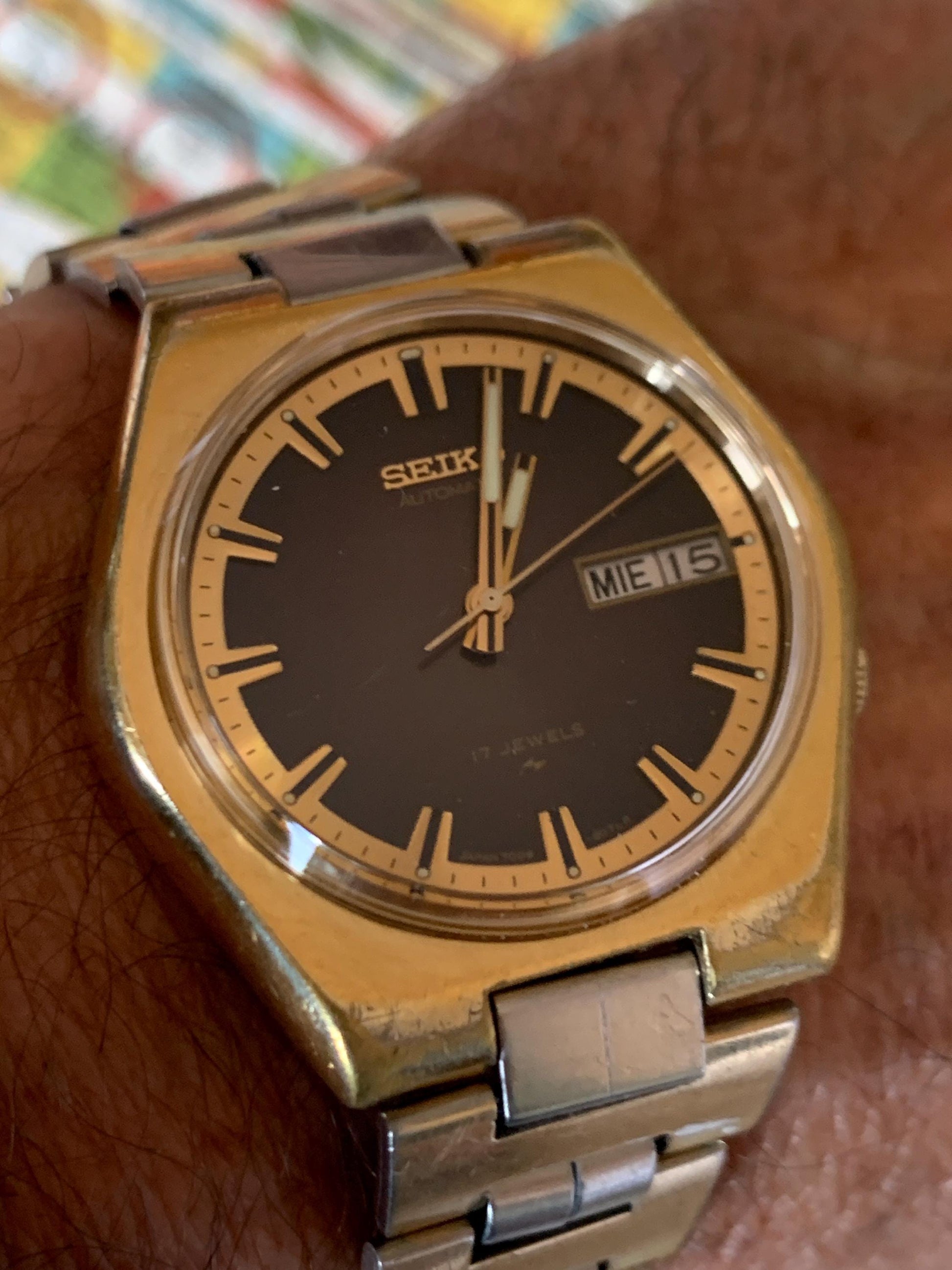 Classic Seiko Automatic Watch 7009-8079 Late 1970s 17 Jewels, Day/Date, Running Well, Gold Tone, Good Condition. Great Crystal. Classic.
